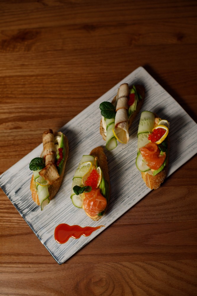 з лососем, вугрем, ікрою, крем сиром, авокадо, огірком