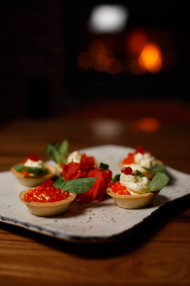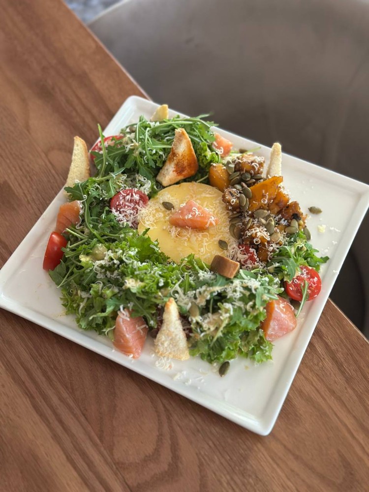 Лосось слабосолений, камамбер, чері, грінки, пармезан, насіння