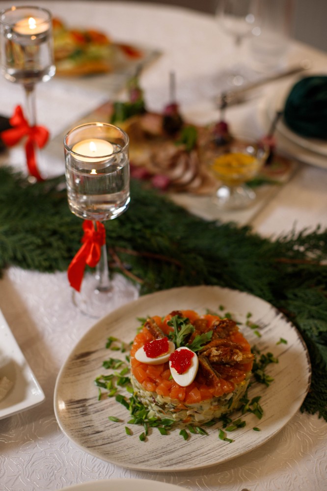 буряк, оселедець, картопля, яйце, цибуля, авокадо, яблуко, майонез